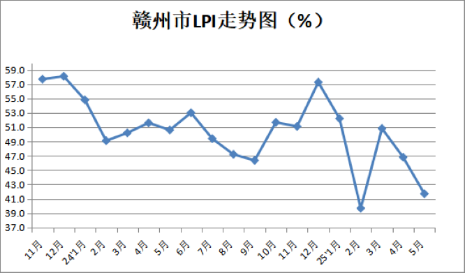 贛州市物流協會發布的2025年5月份贛州市物流業景氣指數為41.7%。