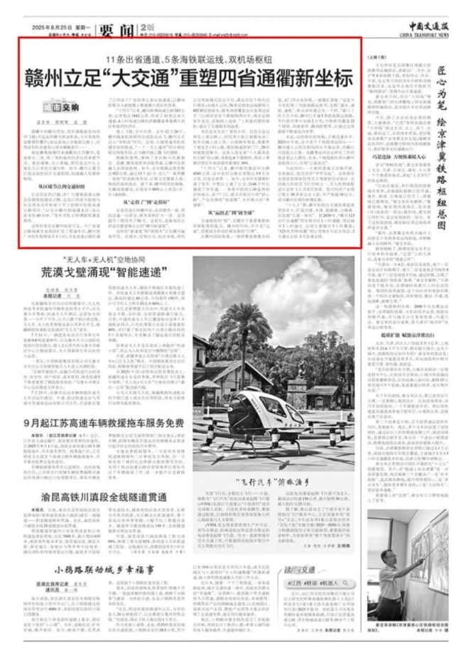 晨曦中的贛州西站,列車滿載旅客向深圳飛馳;不遠處的贛州黃金機場,大中型客機迎著朝陽攀升;安遠縣鳳山至梅屋公路上,自駕游車隊沿著青山綠水蜿蜒前行……