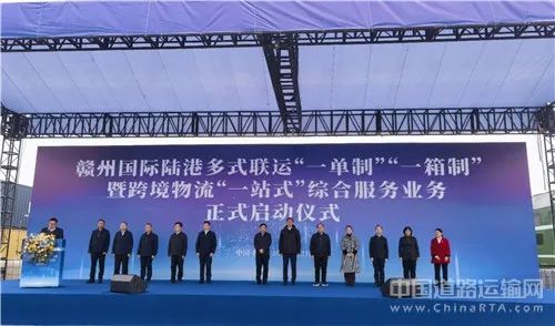 贛州市委常委、南康區委書記何善錦出席,贛州市政府副市長鄒治宇宣布贛州國際陸港多式聯運“一單制”“一箱制”暨跨境物流“一站式”綜合服務業務正式啟動,贛州國際陸港黨工委書記賴彥辰致辭,贛州市政府副秘書長王彥主持,江西中遠海運集裝箱運輸有限公司、贛州陸港國際物流服務公司等企業負責人介紹多式聯運“一單制”“一箱制”和跨境物流“一站式”綜合服務業務情況。