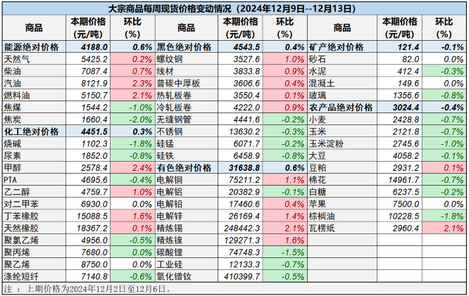 中國重要大宗商品市場價格變動情況周報 (241209--241213)