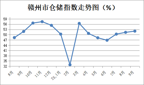 【權威發布】2025年9月贛州市倉儲指數為52%