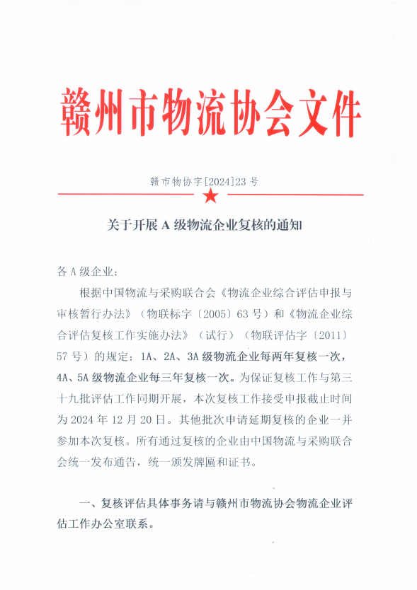 一、復核評估具體事務請與贛州市物流協會物流企業評估工作辦公室聯系。