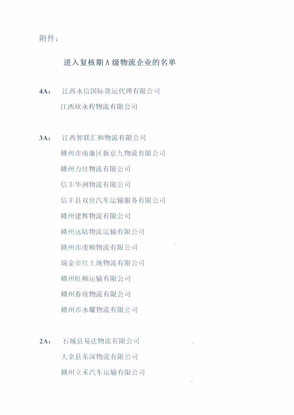 附件:進入復核期A級物流企業的名單