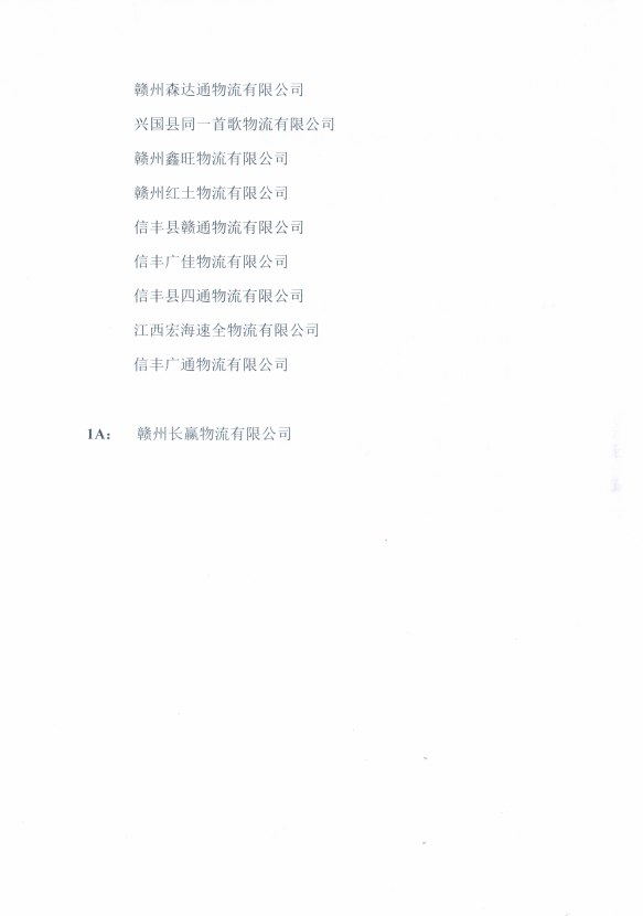 1A: 贛州長贏物流有限公司