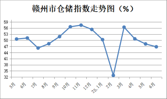 【權威發布】2025年6月贛州市倉儲指數為46.8%