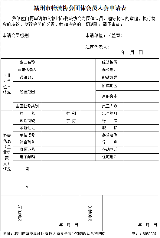 2、贛州市物流協會第四屆理事會入會申請表