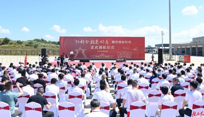 市委書(shū)記黃喜忠宣布贛州瑞金機(jī)場(chǎng)正式通航。中國(guó)民用航空華東地區(qū)管理局副局長(zhǎng)顧青頒發(fā)機(jī)場(chǎng)使用許可證。江西省機(jī)場(chǎng)集團(tuán)總經(jīng)理姜春陽(yáng)致辭。市人大常委會(huì)主任趙多仙,市政協(xié)主席徐兵,市領(lǐng)導(dǎo)尹忠等出席通航活動(dòng)。市領(lǐng)導(dǎo)鄒治宇主持。