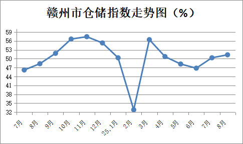 【權(quán)威發(fā)布】2025年8月贛州市倉儲指數(shù)為51.3%
