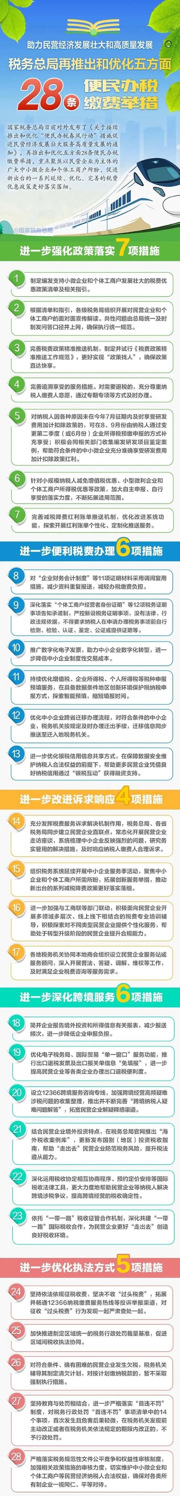 稅務(wù)總局再推28條便民辦稅繳費(fèi)舉措助力民營經(jīng)濟(jì)發(fā)展!一圖了解具體內(nèi)容