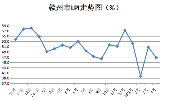 贛州市物流協會發布的2025年4月份贛州市物流業景氣指數為46.8%。