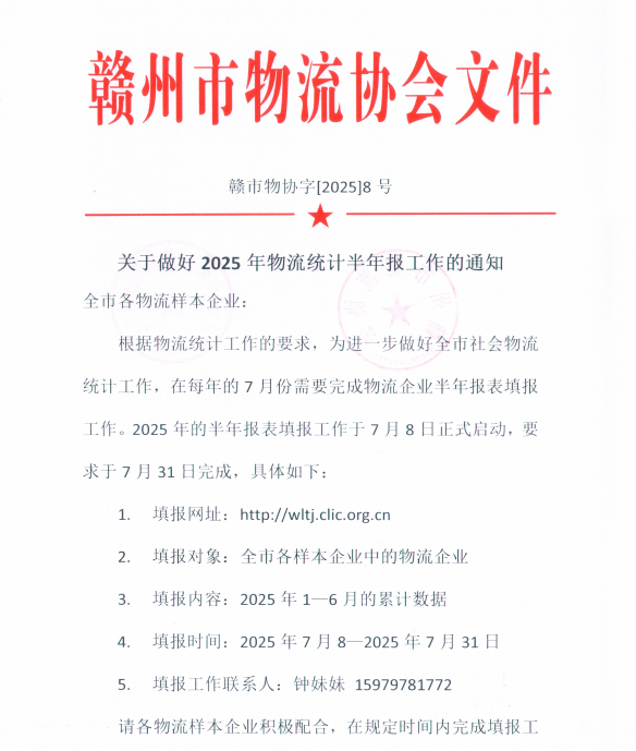 根據物流統計工作的要求,為進一步做好全市社會物流統計工作,在每年的7月份需要完成物流企業半年報表填報工作。2025年的半年報表填報工作于7月8日正式啟動,要求于7月31日完成,具體如下: