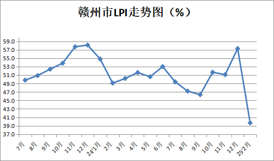 【權威發布】2025年2月贛州市物流業景氣指數為39.7%