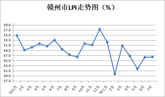 贛州市物流協(xié)會發(fā)布的2025年7月份贛州市物流業(yè)景氣指數(shù)為46.4%。