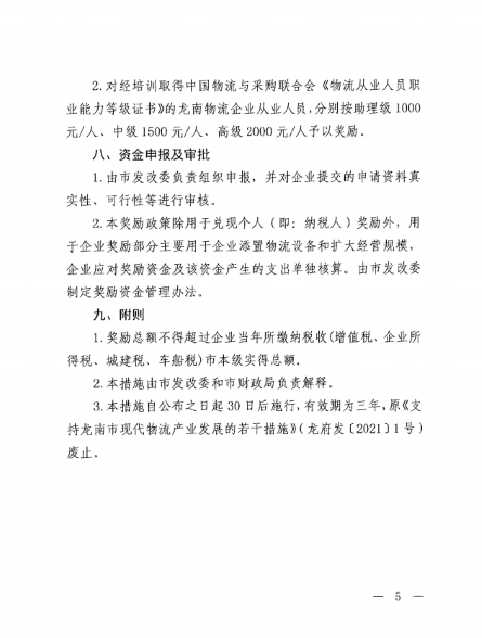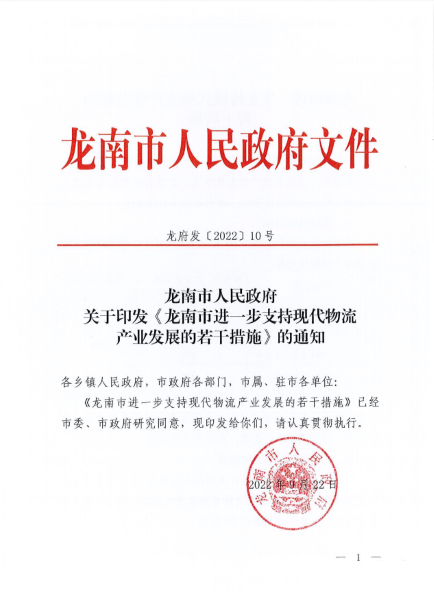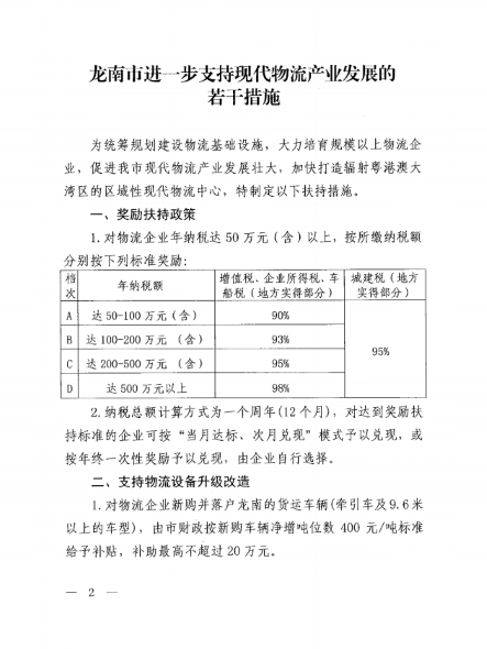 龍南市進一步支持現代物流產業發展的若干措施