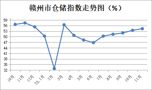 【權威發布】2025年11月贛州市倉儲指數為54.3%