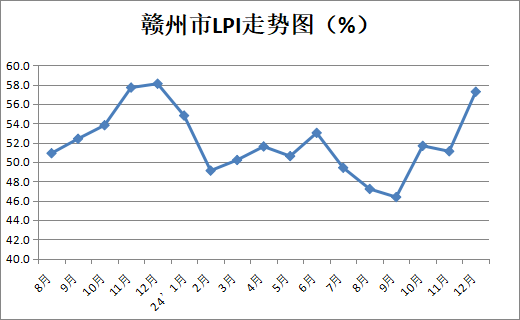 贛州市物流協會發布的2024年12月份贛州市物流業景氣指數為57.3%,較上月上升6.2個百分點。